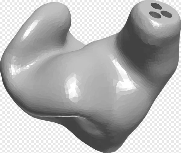 Discover our free PNG download of a unique grey low-poly 3D model, resembling a custom earplug, hearing aid, or in-ear monitor. This abstract anatomical shape features a faceted design and three distinct openings, perfect for technology concepts, medical illustrations, or digital art projects. With its transparent background, this high-quality render seamlessly integrates into presentations, websites, and graphic design work. Enhance your creative projects with this modern, versatile 3D object. Download this royalty-free asset instantly!