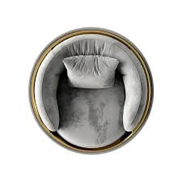 Download this stunning high-resolution PNG image of a grey velvet round chair with a gold base. Perfect for interior design projects, websites, brochures, or any design needing a touch of modern elegance. The image features a top-down view, showcasing the chair's unique circular shape and luxurious texture. This free PNG download is transparent, making it easy to integrate into your designs. Enhance your projects with this beautiful and versatile image. Download now!