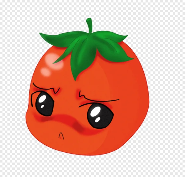 Download this expressive grumpy kawaii tomato character PNG for free! This adorable red tomato illustration features a furrowed brow, puffed cheeks, and big, sparkling eyes, conveying a clearly annoyed or angry emotion. Perfect for adding a touch of personality and humor to your digital designs, social media posts, instant messages, or educational content. Its transparent background ensures easy integration into any project. Get this high-quality, vibrant tomato emoji sticker today to make your creations stand out!