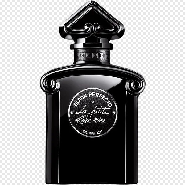Discover the exquisite Guerlain Black Perfecto by La Petite Robe Noire perfume bottle in this free, high-quality PNG image. Perfect for beauty enthusiasts, graphic designers, and e-commerce stores, this elegant black fragrance bottle with its iconic spade cap and detailed silver label is ready for your projects. Download the transparent background PNG to enhance your websites, presentations, or creative work with a touch of luxury and sophistication. Get your free luxury perfume PNG now!