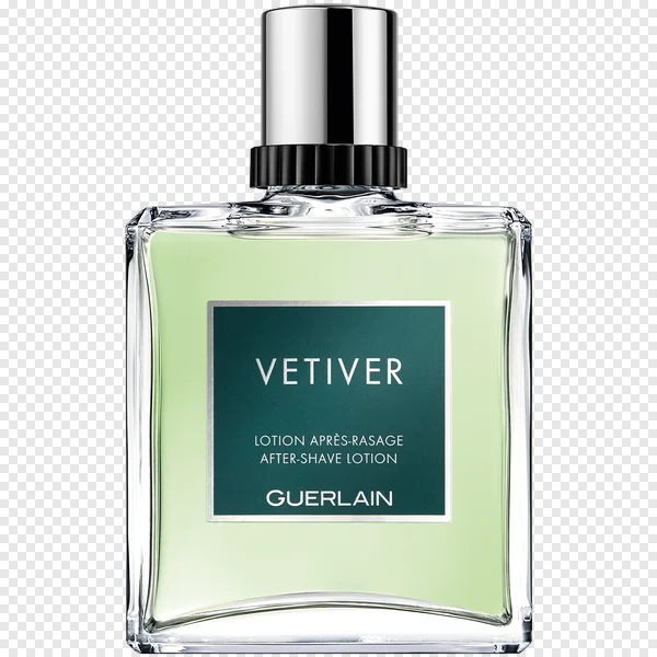 Elevate your design projects with this high-quality free PNG of Guerlain Vetiver After-Shave Lotion. Featuring a sleek clear glass bottle with refreshing pale green liquid, a sophisticated dark green label, and a shiny metallic silver cap, this transparent image is perfect for e-commerce, beauty blogs, marketing materials, and graphic design. Highlight luxury men's grooming, skincare products, or classic fragrance bottles effortlessly. Download now to add a touch of sophisticated elegance and a fresh, clean aesthetic to your visuals!
