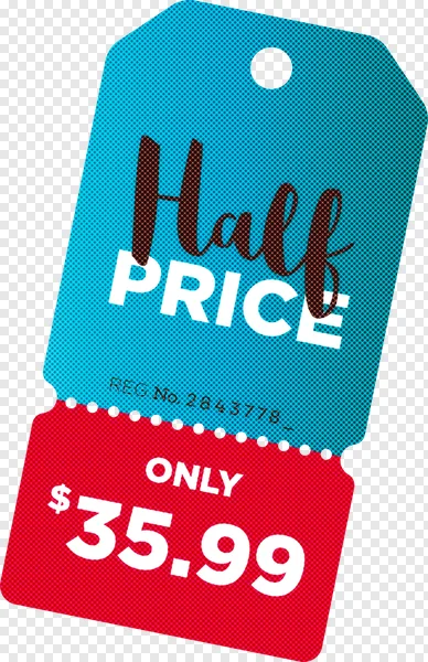 Download this eye-catching 'Half Price' sale tag PNG for free, featuring a prominent 'ONLY $35.99' price. This vibrant blue and red discount sticker, complete with a stylish halftone dot pattern and perforated tear-off look, is perfect for all your promotional needs. Ideal for e-commerce product pages, online advertisements, social media campaigns, print flyers, or any marketing material where you want to highlight significant savings. Its transparent background makes integration seamless. Get this high-quality graphic to boost your sales and draw customer attention to amazing deals!