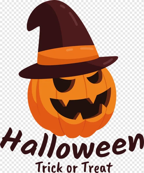 Get into the Halloween spirit with this charming free PNG of a jack-o'-lantern wearing a classic witch hat! This festive illustration features a grinning pumpkin with a dark brown witch hat and an orange band, accompanied by the bold text 'Halloween' and 'Trick or Treat'. Perfect for adding a spooky yet cute touch to your digital projects, social media posts, invitations, or craft designs. The transparent background makes it easy to integrate into any creative work. Download this high-quality vector-style graphic instantly and make your Halloween designs stand out. Ideal for personal and commercial use (check license). Celebrate the season with this iconic trick-or-treat graphic.