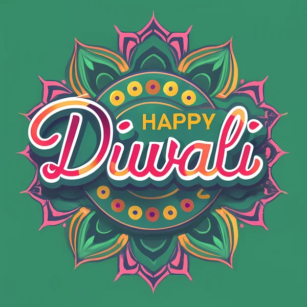 Celebrate the Festival of Lights with our stunning "Happy Diwali" PNG image! This free, high-quality graphic features bold, colorful, layered typography set against a beautiful, intricate mandala or rangoli-inspired background in vibrant shades of green, pink, orange, and yellow. Perfect for creating eye-catching greeting cards, social media posts, festive banners, presentations, or any digital content to spread cheer during this auspicious Indian festival. Download this vibrant and modern celebration illustration today to illuminate your designs for free and convey your warm wishes!