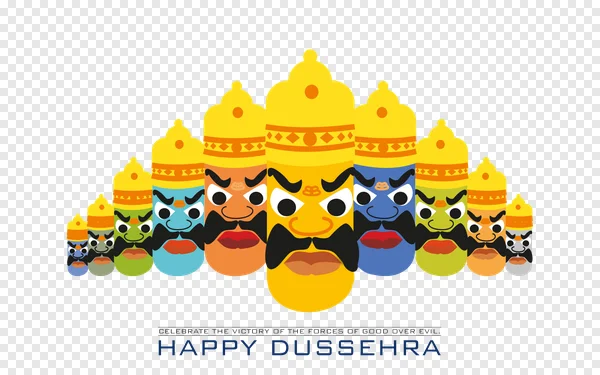 Download this vibrant and festive Happy Dussehra PNG image for free! Featuring a stylized depiction of Ravana with multiple faces, this illustration is perfect for creating Dussehra greetings, social media posts, festive banners, or adding a cultural touch to your designs. High-resolution and transparent background for easy integration into your projects. Celebrate the victory of good over evil with this beautiful PNG!