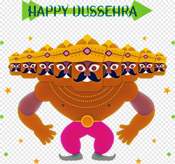 Download this vibrant 'Happy Dussehra' PNG featuring a stylized illustration of Ravana, the ten-headed demon king. Perfect for celebrating the Hindu festival of Vijayadashami, signifying the victory of good over evil. This high-quality graphic with a transparent background is ideal for creating festive greeting cards, social media posts, educational content, or adding a touch of Indian culture to your designs. Get this unique Ravana illustration for free and enhance your Dussehra projects with ease!