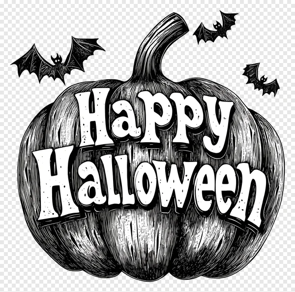 Download this free Happy Halloween PNG image featuring a beautifully sketched pumpkin with the words "Happy Halloween" and spooky bats flying around it. Perfect for Halloween designs, party invitations, social media graphics, or any spooky project! This high-quality, transparent background PNG is ready to use. Get your free download now and add a touch of Halloween magic to your creations!