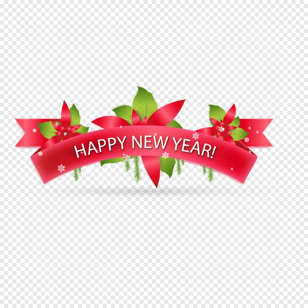 Celebrate the upcoming year with our vibrant Happy New Year banner PNG! This festive red ribbon features elegant white 'HAPPY NEW YEAR!' text, adorned with beautiful red poinsettia flowers, lush green leaves, delicate snowflakes, and sparkling accents. Perfect for New Year's Eve invitations, greeting cards, social media posts, website headers, or any holiday-themed graphic design project. Download this high-quality, transparent PNG for free and add a touch of joy and celebration to your creations. Get your free New Year's graphic today!