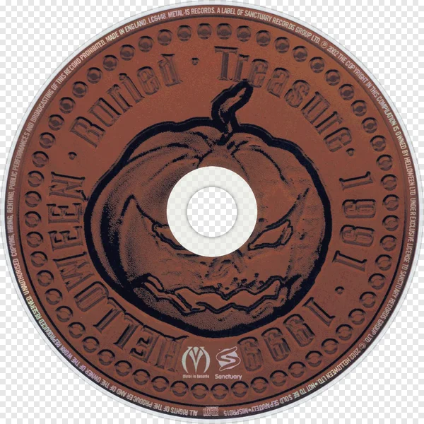 Tags: 1989 1996 Buried Treasure CD disc Halloween Helloween Metal-Is Records Sanctuary Records album art band merchandise free download heavy metal jack-o'-lantern music compilation music industry pumpkin retro spooky graphic transparent PNG vintage