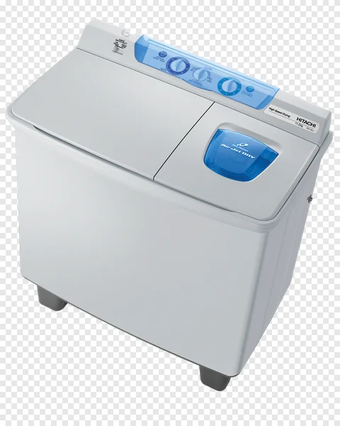 Download this high-quality PNG image of a Hitachi top-load washing machine. Perfect for websites, brochures, or presentations related to appliances, home goods, or laundry. The image features a clear view of the machine's control panel, highlighting its Air Jet Dry technology. Download now and enhance your design projects with this realistic and detailed product image. This royalty-free image is readily available for immediate download.
