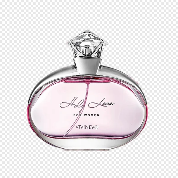 Download a high-quality, transparent PNG image of a 'Holy Love' perfume bottle by Vivinevo. Perfect for graphic design projects, website mockups, social media posts, or any creative endeavor. This free PNG features a beautifully designed fragrance bottle with a diamond-shaped cap and elegant branding. Enhance your projects with this stunning, royalty-free image! Get your free download now!