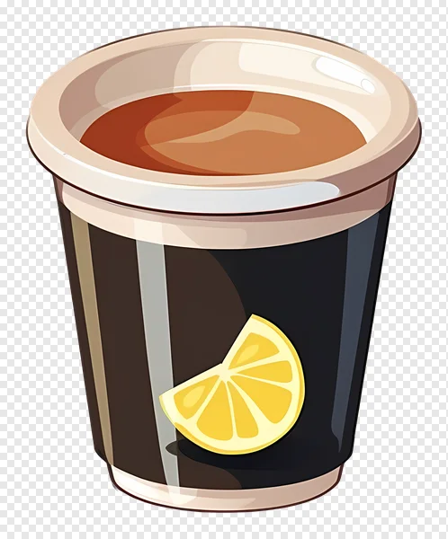 Download this vibrant, free PNG of a hot lemon tea in a disposable takeaway cup. Perfect for adding a refreshing touch to your digital projects, café menus, blog posts, or app interfaces. This high-quality illustration features a stylized brown beverage with a bold lemon slice graphic, isolated on a transparent background for easy integration. Get your free tea cup icon now and elevate your designs!