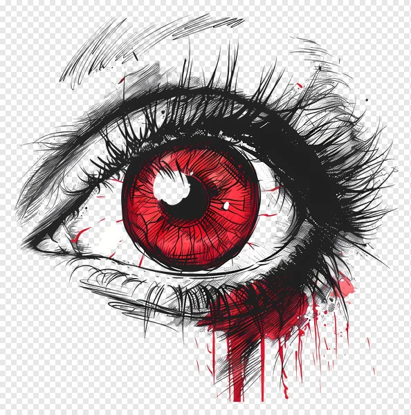 Tags: abstract eye black background blood drops brushstrokes creepy eye dark art digital art edgy emotion free png gothic grunge art horror graphic human eye intense gaze pain red eye splatter transparent vibrant red