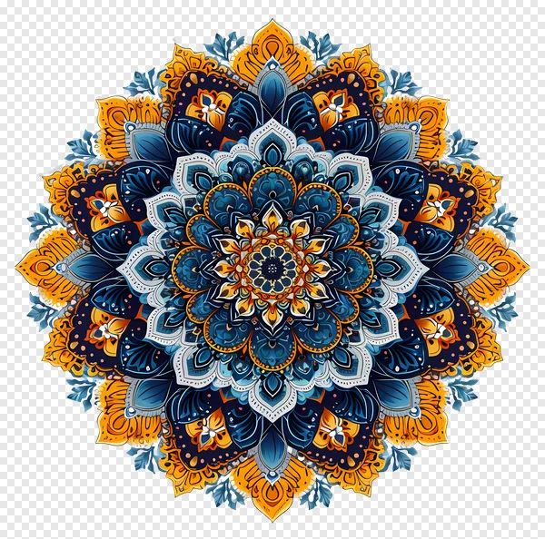 Download this stunning, high-resolution mandala PNG image for free! Featuring a beautiful blend of deep blues, vibrant golds, and intricate patterns, this design is perfect for adding a touch of elegance to your projects. Use it for scrapbooking, digital art, website backgrounds, invitations, or any creative endeavor. Transparent background for easy integration. Enhance your designs with this free, beautiful mandala today!