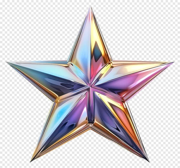 Download this stunning iridescent star PNG image for free! Featuring a vibrant, multi-colored, and highly reflective 5-point star design, this graphic is perfect for adding a touch of sparkle to your projects. Use it for digital art, graphic design, presentations, social media, or any creative endeavor. High-resolution and transparent background for easy integration. Get your free download now!