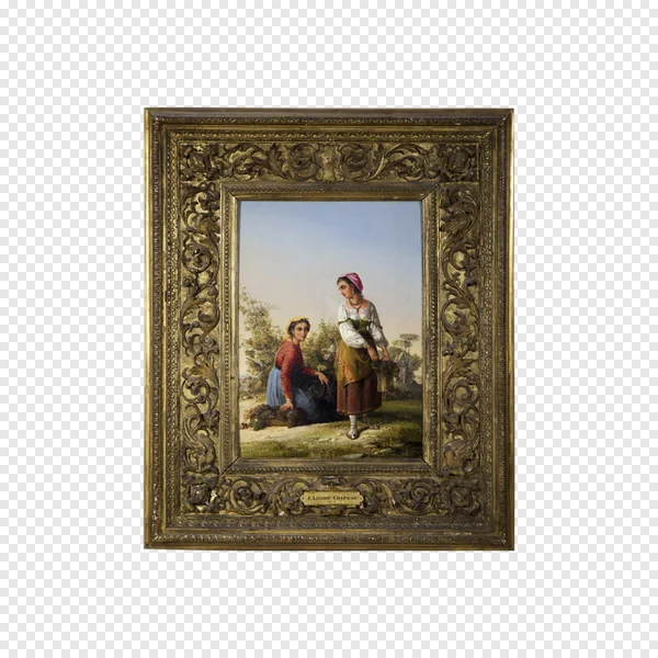 Tags: 19th century European art J. Linton Chapman antique art art history basket of flowers classical painting classical realism figural painting framed artwork free PNG download high resolution image historical art landscape art oil painting pastoral art rural scene traditional dress two women vintage art
