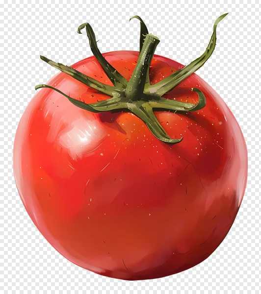 Discover our stunning, free high-resolution PNG image of a vibrant red tomato. This detailed illustration features a perfectly ripe, juicy tomato with a fresh green stem and subtle glossy highlights, all on a transparent background for easy integration into your designs. Ideal for food blogs, recipe cards, grocery apps, healthy eating promotions, or any project needing a touch of fresh produce. Download this realistic, high-quality tomato clipart today and enhance your graphic design, web content, or digital art projects without cost. Perfect for adding a fresh, organic element to your visual content. Get your free transparent tomato PNG now!