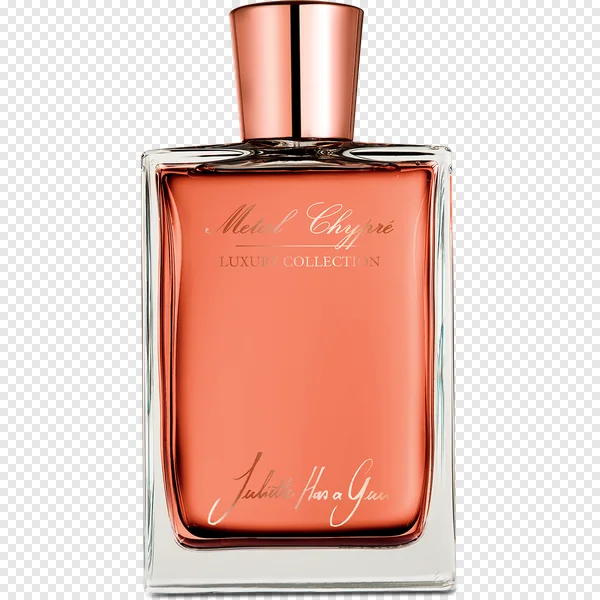 Download a high-quality, transparent PNG image of the Juliet Has a Gun Metal Chypre perfume bottle. Perfect for graphic design projects, website mockups, social media content, or any creative endeavor. This stunning image showcases the elegant design of the perfume, featuring its signature orange hue and sophisticated branding. Get this free PNG now and elevate your visuals!