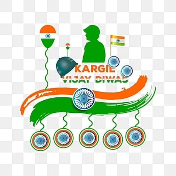 Download this vibrant Kargil Vijay Diwas PNG image for free! Perfect for social media posts, websites, or presentations celebrating India's victory. This high-quality design features the Indian flag, a soldier silhouette, and symbolic elements representing courage and patriotism. Download now and show your support for our brave soldiers! This free PNG image is transparent, easily adaptable to your design projects, and ready to enhance your Kargil Vijay Diwas celebrations. No attribution required!