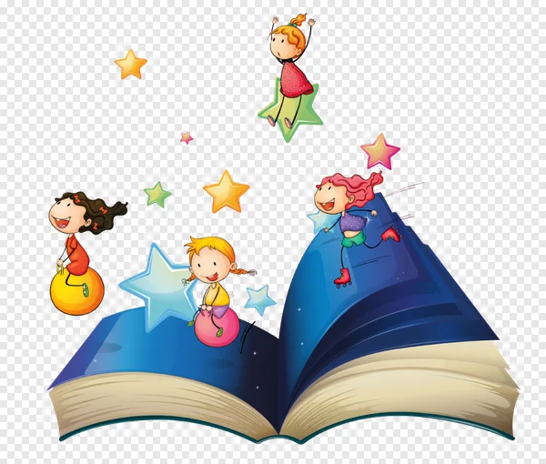 Download this charming free PNG image of children reading a book and playing amongst the stars! Perfect for educational materials, children's projects, storybooks, website graphics, and more. This high-quality illustration features cute kids on roller skates, bouncing balls, and stars, bringing a whimsical touch to your designs. Get your free download now and spark imagination!
