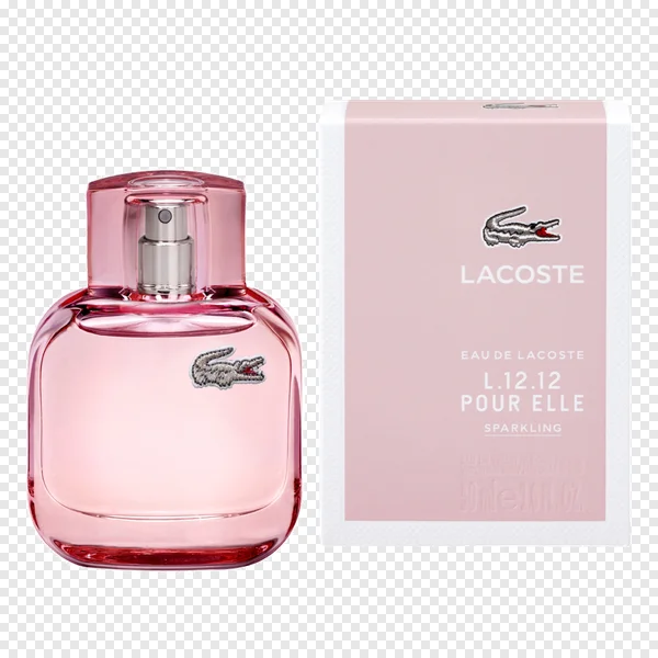 Download a high-quality, transparent PNG image of the Lacoste L.12.12 Pour Elle Sparkling perfume bottle and packaging. Perfect for graphic design projects, presentations, website visuals, or social media content. This free PNG features the iconic Lacoste crocodile logo and elegant pink design. Enhance your projects with this beautiful and versatile image – download now!
