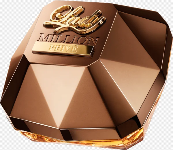 Download a high-quality, transparent PNG image of the Lady Million Prive perfume bottle by Paco Rabanne. Perfect for graphic design projects, presentations, website visuals, or social media content. This stunning image showcases the iconic diamond-shaped bottle with gold accents. Get this free PNG now and add a touch of luxury to your designs! No attribution required.