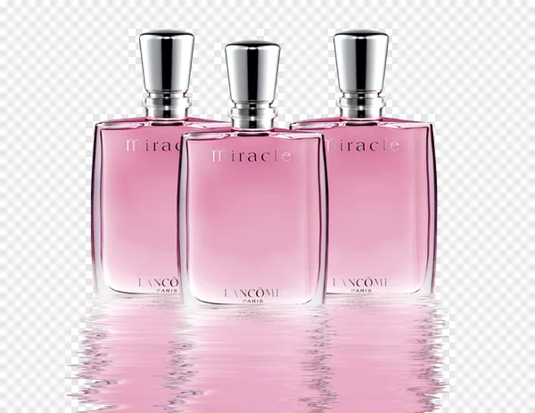 Enhance your designs with this exquisite free PNG of Lancôme Miracle perfume bottles. This high-resolution image showcases three iconic pink fragrance bottles, complete with elegant silver caps and a beautiful water reflection effect. Ideal for fashion magazines, beauty product mockups, personal projects, or commercial use. Download this transparent Lancôme Miracle Eau de Parfum PNG for free to bring a touch of luxury and glamour to your digital creations. Perfect for adding a sophisticated element to any visual content requiring premium beauty product imagery. Get this stunning perfume bottle trio for your next project today!