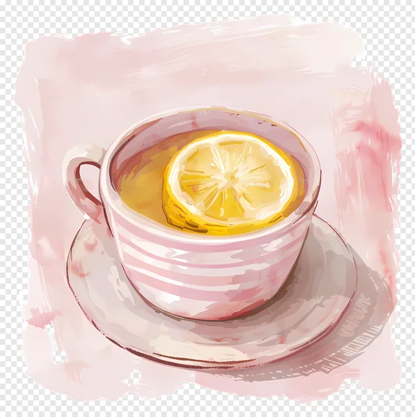Download this beautiful, high-quality lemon tea cup PNG image for free! Perfect for adding a cozy and refreshing touch to your designs, blogs, presentations, or social media. This watercolor-style illustration features a pink teacup with a slice of lemon, ideal for themes of wellness, relaxation, breakfast, or beverages. Get instant access and enhance your projects with this versatile graphic. No attribution required!