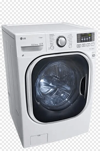 Download this high-resolution PNG image of an LG front-load washing machine. Perfect for websites, brochures, or presentations needing a clean and modern appliance image. This crisp, clear image showcases the LG brand's sleek design and advanced features, including a digital display and Direct Drive technology. Download now and enhance your visual content! Free for personal and commercial use.
