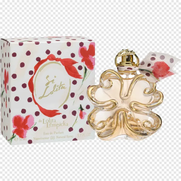 Discover the enchanting Si Lolita by Lolita Lempicka with this high-quality free PNG image. Featuring the iconic gold-accented, clover-shaped perfume bottle and its beautifully designed floral and polka-dotted box, this image captures the essence of a whimsical, luxurious fragrance. Perfect for beauty blogs, e-commerce designs, creative projects, or personal use. Download this transparent background PNG to enhance your visuals today!