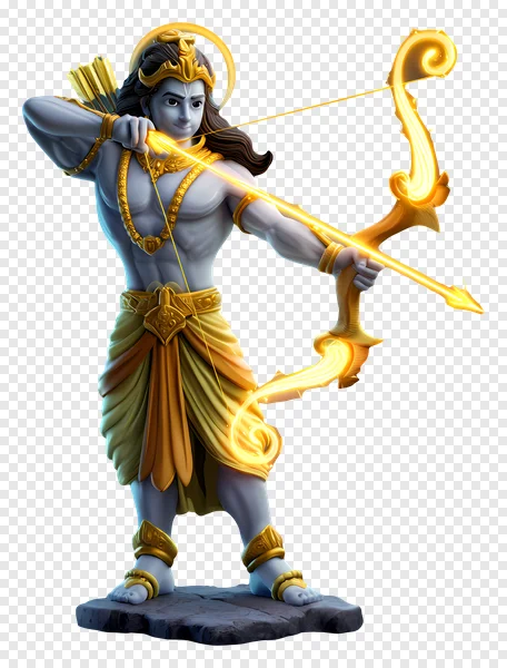 Tags: Archer Bow and Arrow Deity Dharma Digital Art Divine Arrow Diwali Dussehra Free Clipart Glowing Bow Golden Ornaments Hindu God Indian Mythology Lord Rama Prabhu Ram Protection Ram Ramayana Shri Ram Spiritual Stylized Transparent PNG Warrior God