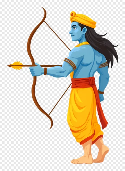 Download this captivating Lord Rama PNG image for free! Featuring the revered Hindu deity with his iconic blue skin, traditional yellow dhoti, and a powerful bow with a golden arrow, this transparent illustration is perfect for your creative projects. Ideal for celebrating Diwali, Dussehra, or incorporating into designs related to Hindu mythology, religious teachings, cultural events, and more. Enhance your graphic design, presentations, social media posts, or educational materials with this high-quality vector-style graphic. Get your free download now and bring a touch of divine power and righteousness to your work!