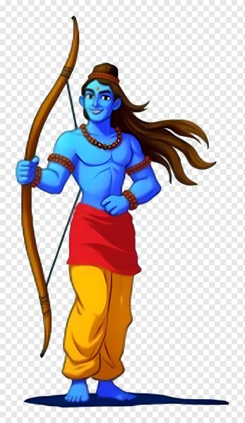 Download a vibrant, high-quality PNG of Lord Rama, the revered Hindu deity, holding his iconic bow and arrow. This charming cartoon illustration features the blue-skinned god with traditional attire and a serene smile, perfect for devotional projects, educational materials, or adding a touch of mythology to your designs. Get this transparent graphic for free and enhance your creative work with the divine presence of Maryada Purushottam Rama. Ideal for festivals like Diwali, Dussehra, or Ram Navami, this image is a versatile asset for any creative endeavor.