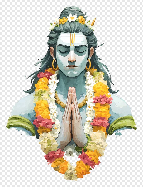 Download this beautiful, high-resolution PNG illustration of Lord Shiva in a prayerful pose (Namaste). Perfect for devotional art, spiritual designs, Hindu-themed projects, or adding a touch of serenity to your creations. This free PNG image features a detailed depiction of Shiva with flowers and traditional markings, ideal for graphic design, digital art, and more. Get your free download now and enhance your projects with this divine imagery!