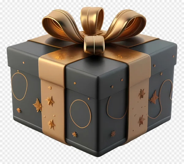 Unwrap elegance with our free PNG download of a luxurious dark gray gift box, exquisitely tied with a shimmering golden ribbon and a prominent, glossy gold bow. This sleek 3D rendered present features subtle golden accents and star-like embellishments, standing out perfectly with its transparent background. Ideal for enhancing your festive designs, holiday greetings, special occasion promotions, birthdays, anniversaries, or sophisticated marketing materials. Download this high-quality, modern gift box PNG for a touch of premium celebration in your projects!