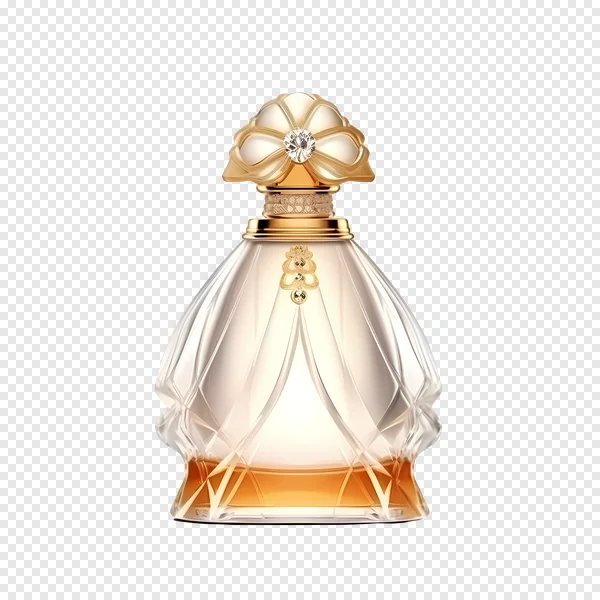 Download this stunning, high-quality PNG of an opulent perfume bottle, featuring a radiant gold floral cap adorned with a sparkling diamond-like gem. Its elegant clear glass body holds a warm amber liquid, complemented by intricate gold detailing. Perfect for beauty product mockups, graphic design projects, marketing materials, or presentations. The transparent background ensures seamless integration into any creative work. Elevate your designs with this exquisite, free-to-download luxury fragrance icon today!