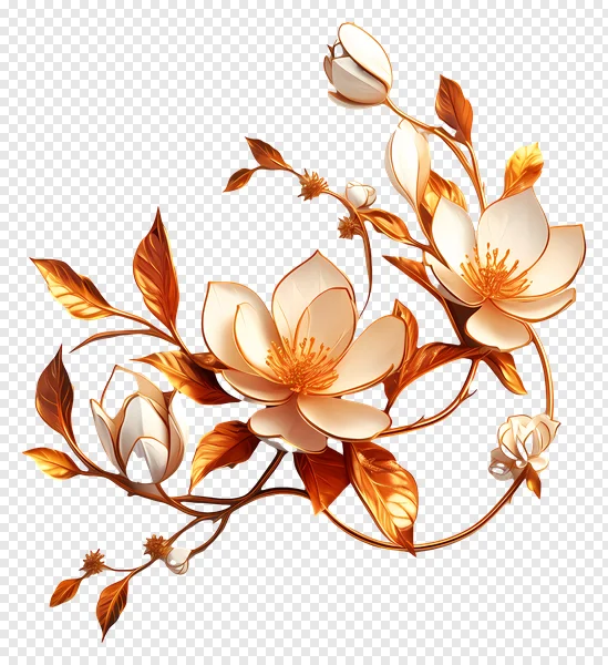 Tags: botanical illustration bronze foliage decorative element delicate flowers digital art flowers elegant design floral branch PNG flower illustration free flower PNG golden flowers golden leaves luxury flowers magnolia blossom metallic gold ornate leaves premium floral graphic transparent background transparent floral wedding floral white magnolia