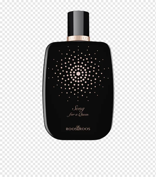 Elevate your design projects with this stunning free PNG of a luxury perfume bottle. Featuring the elegant ROOS&ROOS 'Song for a Queen' fragrance, this black bottle boasts exquisite rose gold accents and a unique radiating dot pattern. Perfect for beauty blogs, product mockups, marketing materials, or any creative endeavor requiring a touch of sophistication. Download this high-quality, transparent background image instantly and add a premium feel to your visuals. Ideal for showcasing luxury cosmetics, fragrances, or fashion accessories. Get your free PNG now and enhance your digital content!