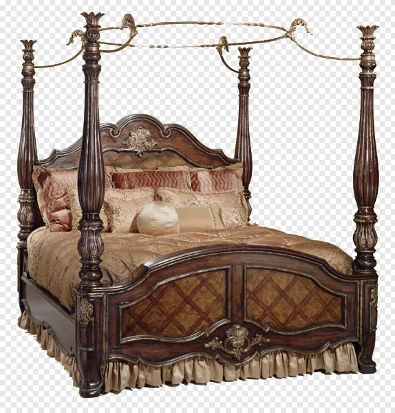 Download this stunning high-resolution PNG image of a luxurious four-poster bed. Perfect for interior design projects, website banners, or any project needing a touch of elegance. The image features intricate carvings, rich wood tones, and a canopy for a truly regal look. Download now and add a touch of opulence to your designs! This free PNG image is high-quality and ready for immediate use. Enhance your visuals today!