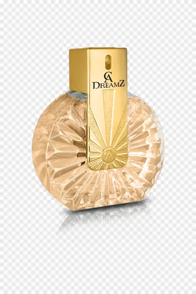 Enhance your digital projects with this exquisite free PNG of a luxury perfume bottle. Featuring the 'CA DREAMZ' brand with a stunning gold cap and a unique sunburst textured label, this high-quality image boasts a crystal-clear, faceted glass bottle filled with an elegant amber liquid. Perfect for e-commerce websites, beauty blogs, marketing materials, or any graphic design project requiring a touch of sophistication and glamour. Download this transparent background PNG instantly to elevate your creative work and captivate your audience with its refined details and brilliant reflection.