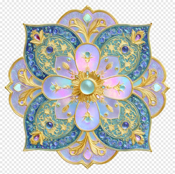 Tags: PNG aqua blue digital art elegant free download gemstone design gold ornament golden filigree graphic element intricate design iridescent jeweled luxury art mandala mystical ornate pink purple spiritual symbol transparent background