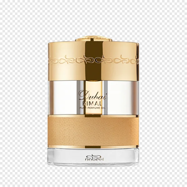Discover the captivating allure of Nabeel's Dubai RIMAL Pure Perfume Oil with this high-quality, free PNG image. Featuring an elegant gold-capped bottle adorned with intricate patterns, clear glass, and a textured gold-toned band, this luxurious fragrance image is perfect for e-commerce stores, beauty blogs, marketing materials, or personal design projects. Its transparent background ensures seamless integration into any visual content. Elevate your designs with this premium perfume bottle PNG – available for instant download at no cost!