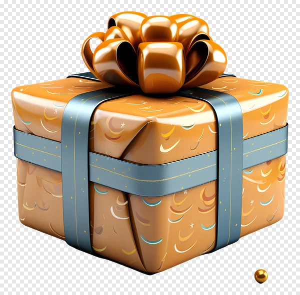 Download this exquisite glossy orange gift box PNG for free! Perfect for adding a touch of luxury and celebration to your projects. Featuring a vibrant orange wrap adorned with subtle abstract patterns, a sleek blue metallic ribbon, and a magnificent golden bow. The 3D rendered design shines brightly against a pure black background, making it an ideal asset for holiday greetings, birthday cards, promotions, or any special festive occasion. Enhance your designs with this high-quality, free present graphic.