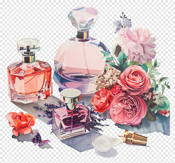 Elevate your designs with this stunning free PNG of luxury perfume bottles surrounded by a vibrant bouquet of pink and red roses. Featuring three distinct, elegant fragrance bottles with exquisite floral details, this transparent image is perfect for beauty blogs, cosmetic advertisements, feminine branding, wedding invitations, or any project needing a touch of sophistication and romance. Download this high-quality, illustrative graphic for free and add a fragrant charm to your creative work!
