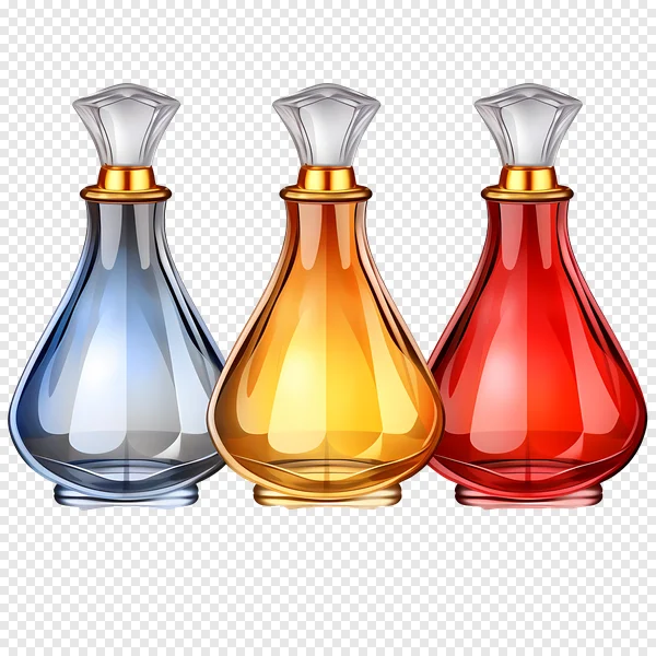 Download this stunning free PNG of three luxurious perfume bottles, perfect for adding a touch of sophistication to your designs. Featuring elegant glass bodies in vibrant blue, rich golden amber, and deep red, each bottle is topped with a sparkling crystal cap and polished gold accents. This high-quality image with a transparent background is ideal for beauty blogs, cosmetic advertisements, graphic design projects, presentations, or any creative content requiring a premium and stylish visual. Elevate your branding and digital projects instantly with these beautiful, ready-to-use fragrance bottle images. Get this premium look for free!