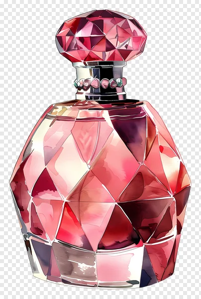Unveil elegance with this stunning free PNG of a luxury pink faceted perfume bottle. Featuring a captivating crystal-like design with shimmering rose and ruby hues, this elegant fragrance bottle stands out against a sleek black background. Its transparent, geometric facets create a sophisticated and glamorous look, perfect for beauty blogs, fashion graphics, cosmetic promotions, or adding a touch of opulent charm to any digital project. Download this high-quality, transparent background PNG image for free and elevate your designs with its dazzling beauty and intricate details. Ideal for websites, presentations, and social media content.