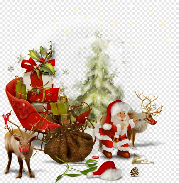 Immerse your projects in holiday magic with this enchanting Santa Claus PNG. Featuring a jolly Santa alongside his festive sleigh overflowing with beautifully wrapped Christmas gifts, and two charming reindeer (including Rudolph with his iconic red nose!), all set against a serene snowy night scene with a twinkling Christmas tree and falling snowflakes. This high-quality, transparent background image is perfect for creating greeting cards, invitations, festive banners, social media posts, or any digital design needing a touch of Christmas cheer. Download this free PNG to add joy and warmth to your holiday season designs!