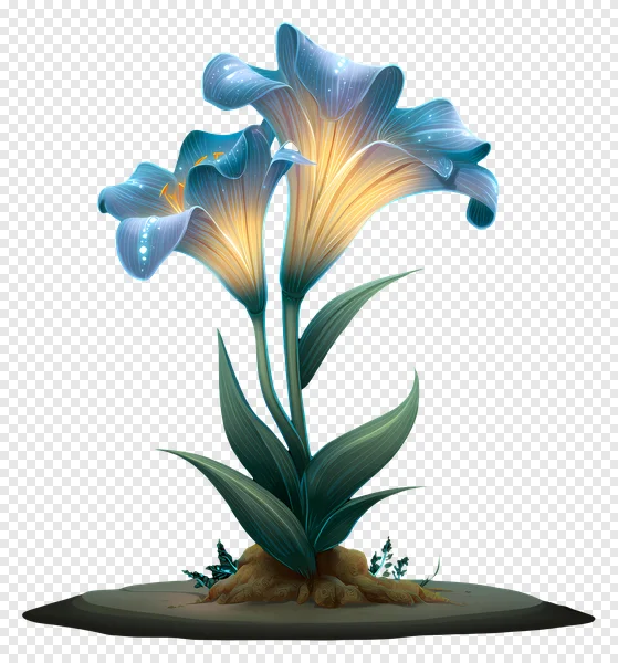 Tags: alien plant bioluminescent blue petals concept art digital art enchanted ethereal fantasy flower fantasy plant free download game asset glowing flowers gold glow illustration luminous plant magical flora mystical roots sci-fi flower sparkling transparent PNG
