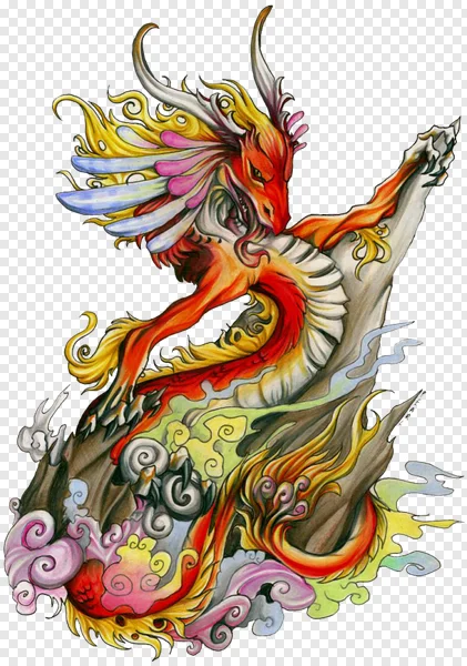 Dive into a realm of myth and magic with this breathtaking, free PNG image of a dynamic dragon-phoenix hybrid. This vibrant illustration showcases a majestic creature, rendered in striking fiery reds, oranges, and golds, adorned with intricate scales, powerful wings, and elegant horns. Swirling mystical clouds in pastel hues frame its intense form, making it a compelling piece of fantasy art. Perfect for game developers, graphic designers, or anyone seeking to add a touch of legendary grandeur to their projects, this high-quality, transparent PNG is ideal for web design, print, merchandise, and more. Download now and ignite your creativity with this iconic mythical beast!
