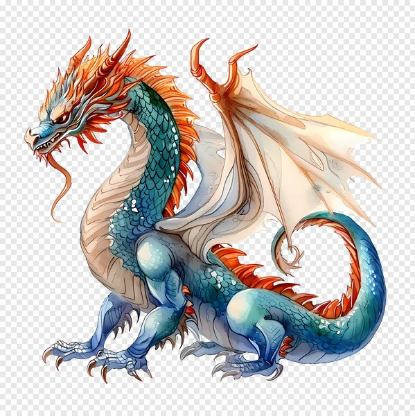 Unleash the power of fantasy with our stunning Teal and Orange Dragon PNG. This detailed, high-resolution illustration features a magnificent mythical beast with striking blue and teal scales, fiery orange horns, a majestic crest, powerful wings, and fierce red eyes. Perfect for fantasy game assets, unique website graphics, captivating digital art, T-shirt designs, or any creative project needing a touch of magic. Download this incredible transparent PNG for free and bring your designs to life! Its intricate details and vibrant watercolor-style shading make it truly stand out. Get this fearsome yet beautiful fantasy dragon today!